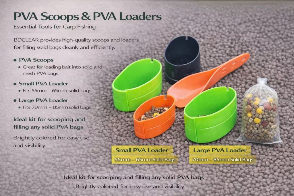 Durable tools designed to pack mesh and solid bags efficiently. Compatible with all standard baiting systems.、